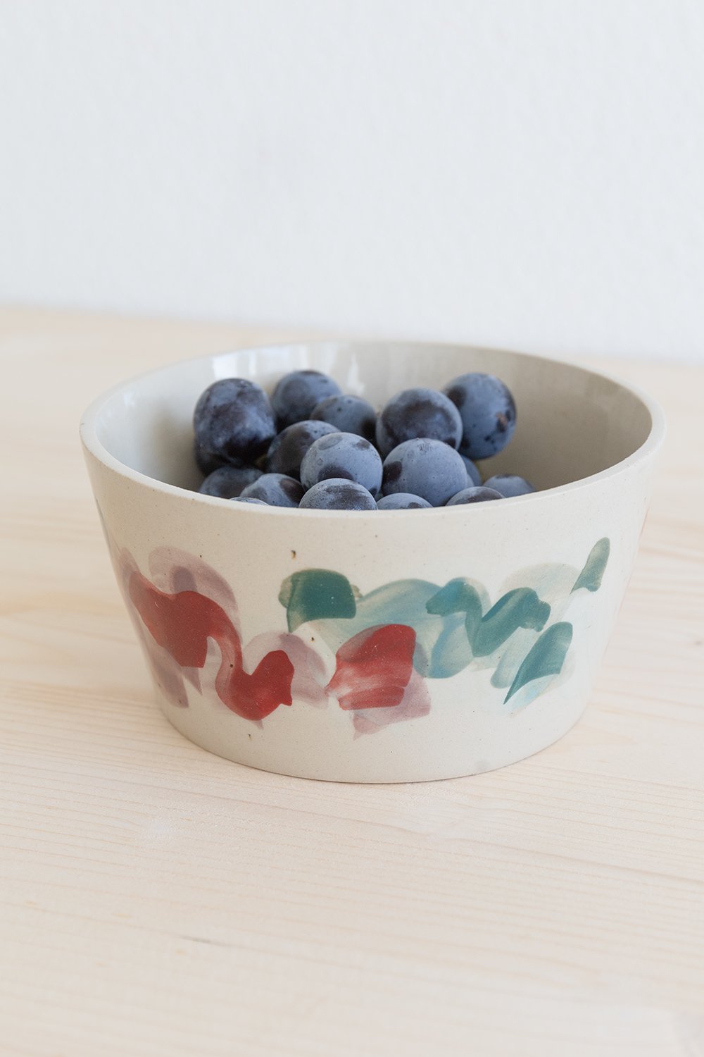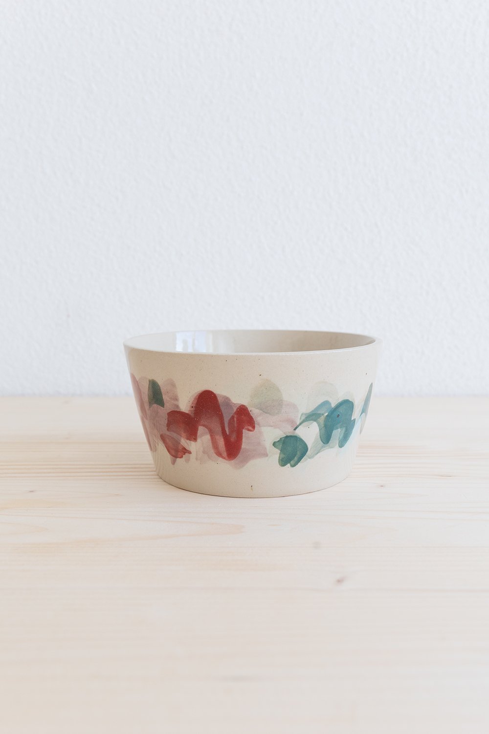 Medium Bowl made of stoneware clay, decorated with coloured underglazes and a final glossy transparent glaze.