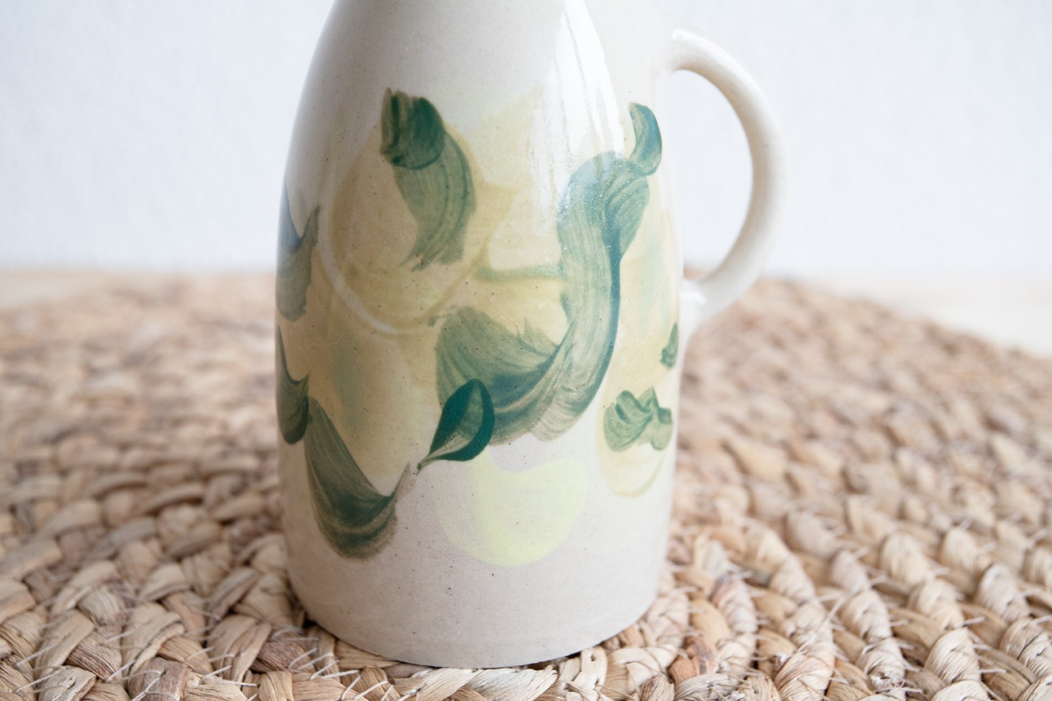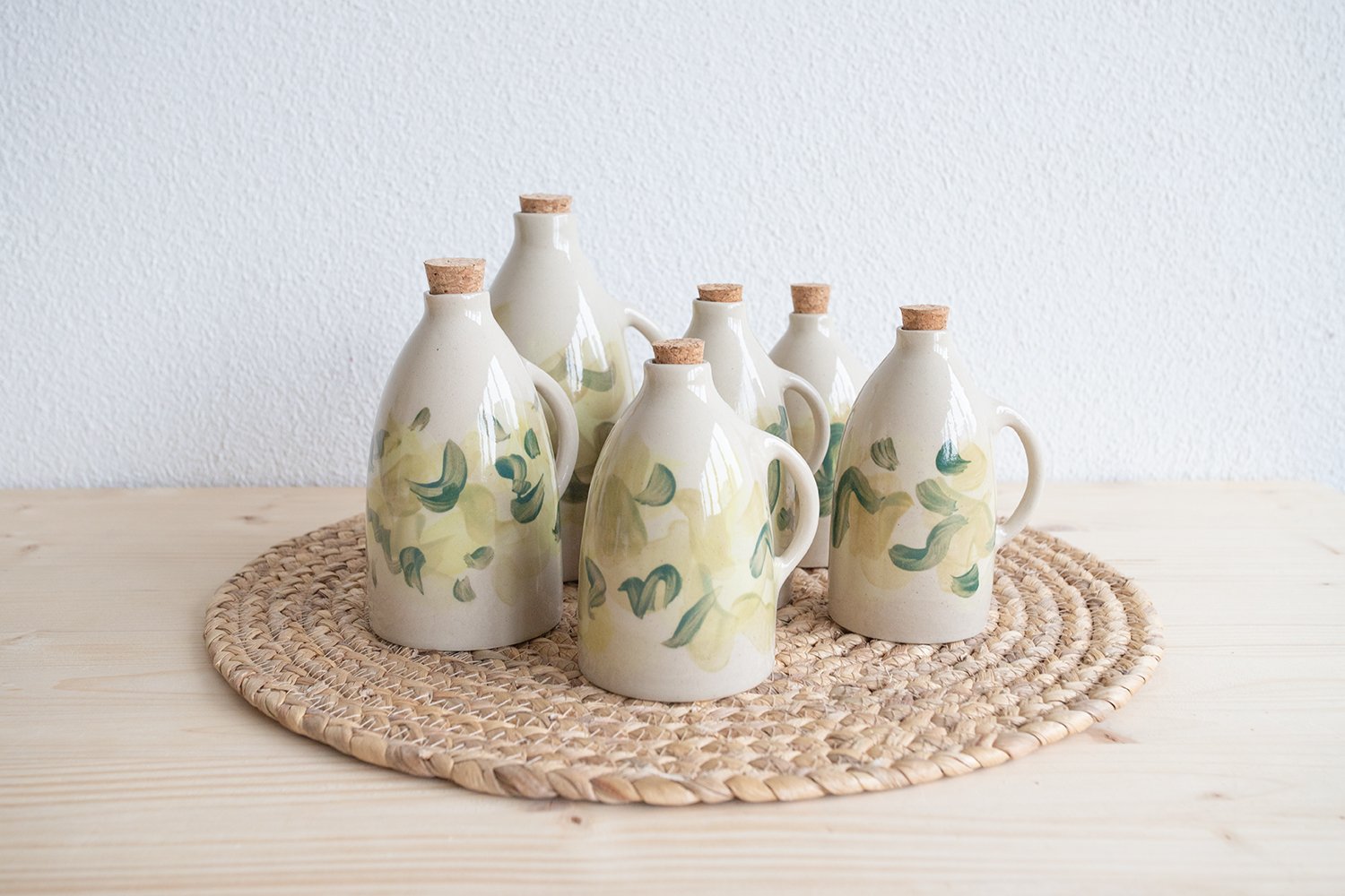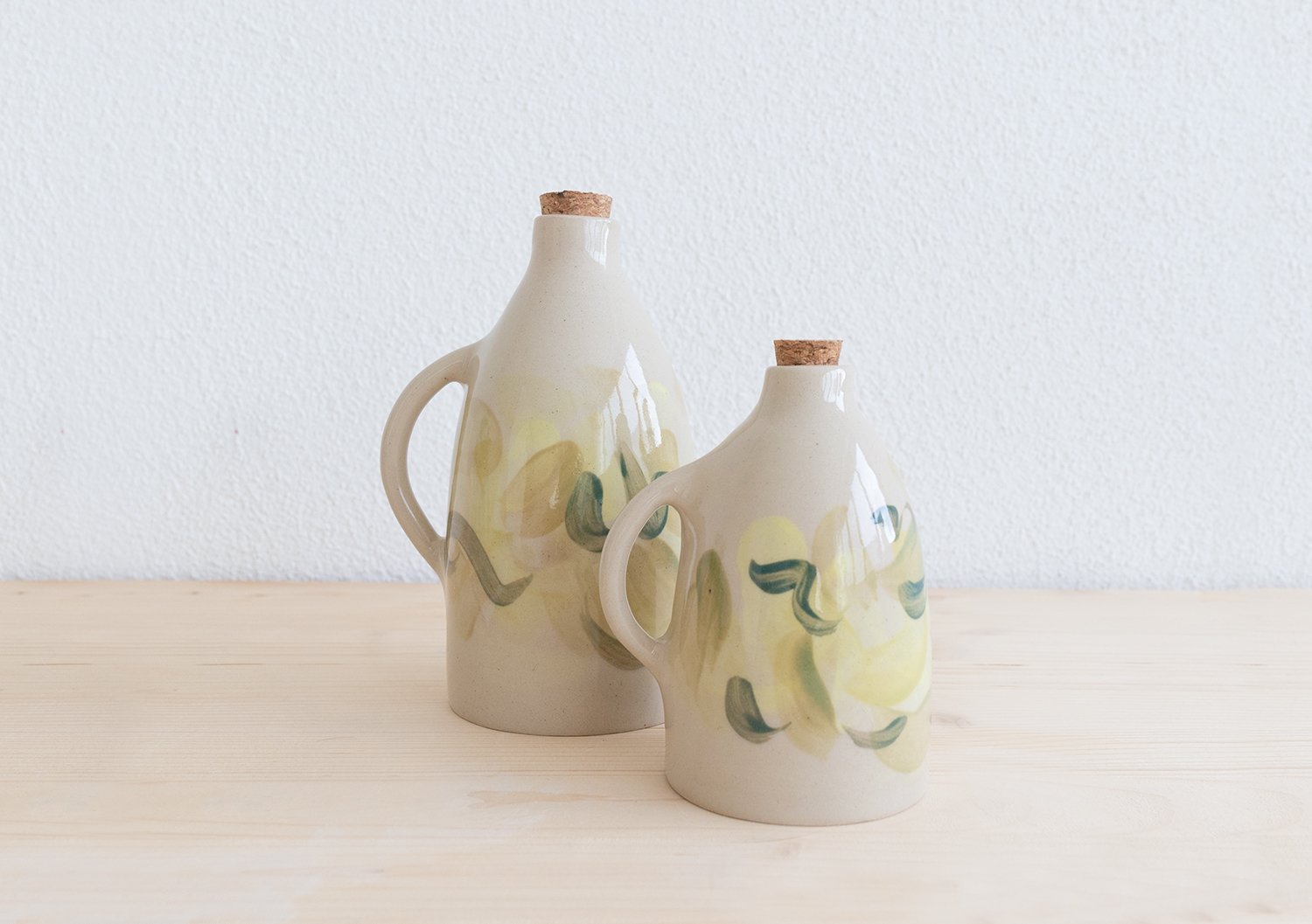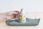 Bottle made of stoneware clay, decorated with coloured underglazes and a final glossy transparent glaze.